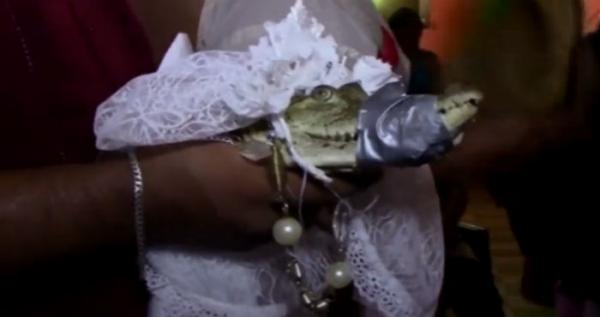 La tarde de este martes el Alcalde del municipio pesquero de San Pedro Huamelula, en Oaxaca, se casó con un cocodrilo como parte de una ceremonia tradicional anual para atraer buena fortuna a su comunidad. El Alcalde Joel Vázquez Rojas estuvo acompañado de todos los habitantes del municip...