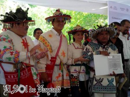 En lo que constituye un hecho sin precedentes en Nayarit, autoridades estatales y federales, estuvieron este viernes en el acto de entrega del tÃtulo de propiedad del centro ceremonial huichol "Tatei Haramara" ubicado en la Isla del Rey dentro del municipio de San Blas, donde se conmemoró el DÃa ...