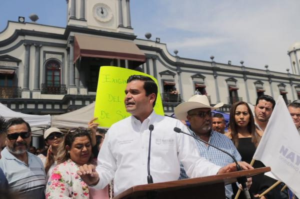 En medio de gritos y pancartas de trabajadores del sector de Salud y sector del Poder Judicial, quienes no han recibido el total de sus pagos correspondientes a esta quincena, el gobernador del estado, Antonio EchevarrÃa GarcÃa, salió a dar un discurso en las inmediaciones del Palacio de Gobierno...