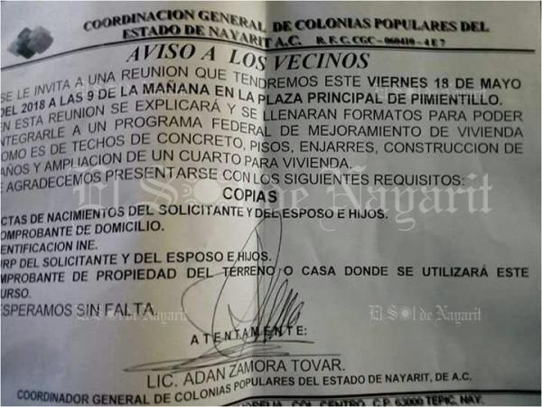 La mañana de este miércoles, salió a la luz pública que personal perteneciente al Gobierno del Estado de Nayarit utiliza recursos públicos, donde ofrecen un "mejoramiento de vivienda", bajo la condición de entregar documentos para integrarlos al programa. Es precisamente Adán Zamora Tovar,...